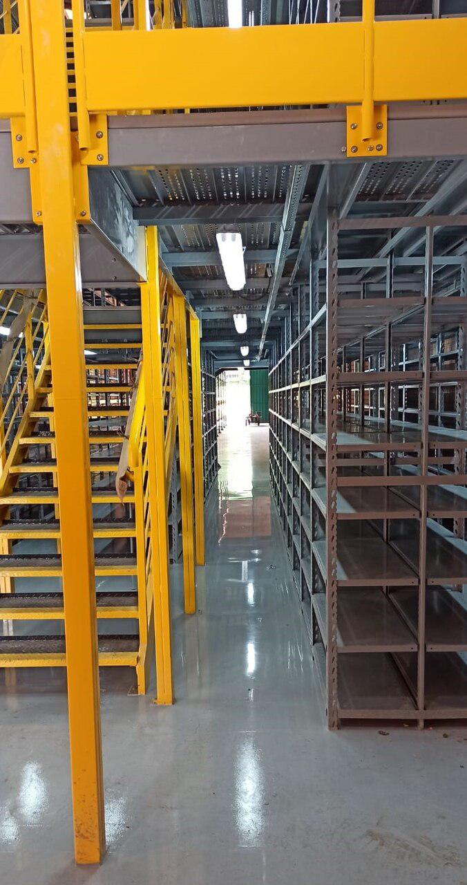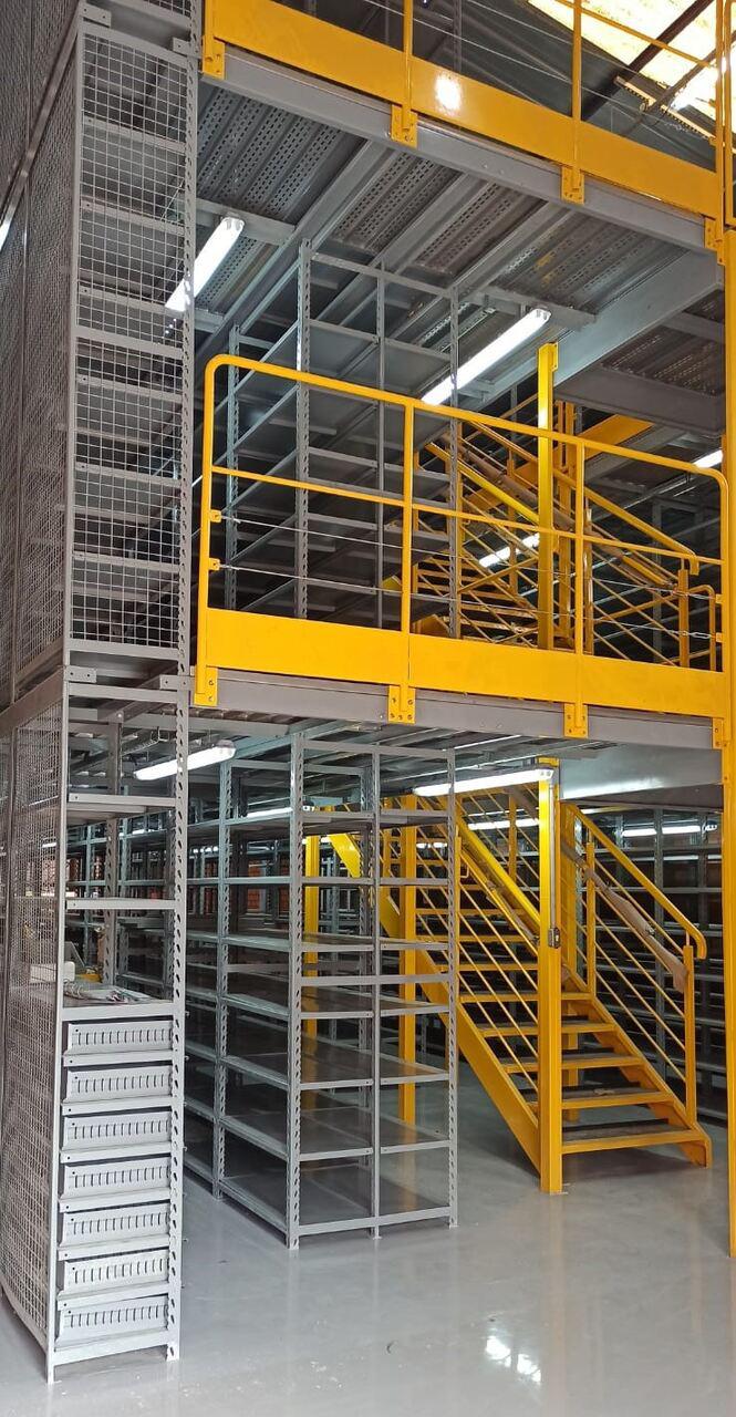 Lembrando que o entrepiso se sustenta sobre as colunas das próprias estantes, podendo ter piso perfilado, estampado ou grelhado. Nesse caso, cada entrepiso tem 96 metros, um acréscimo de 192 m² de espaço para armazenamento.