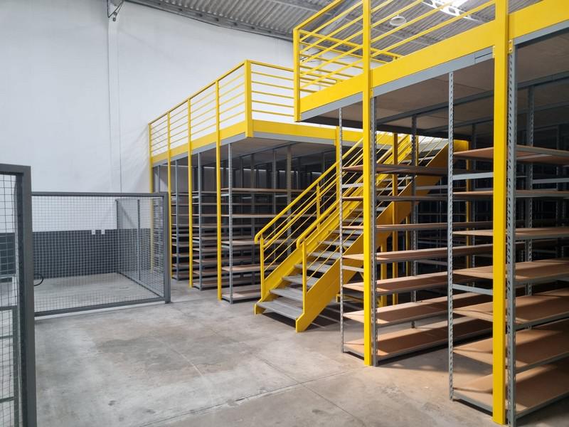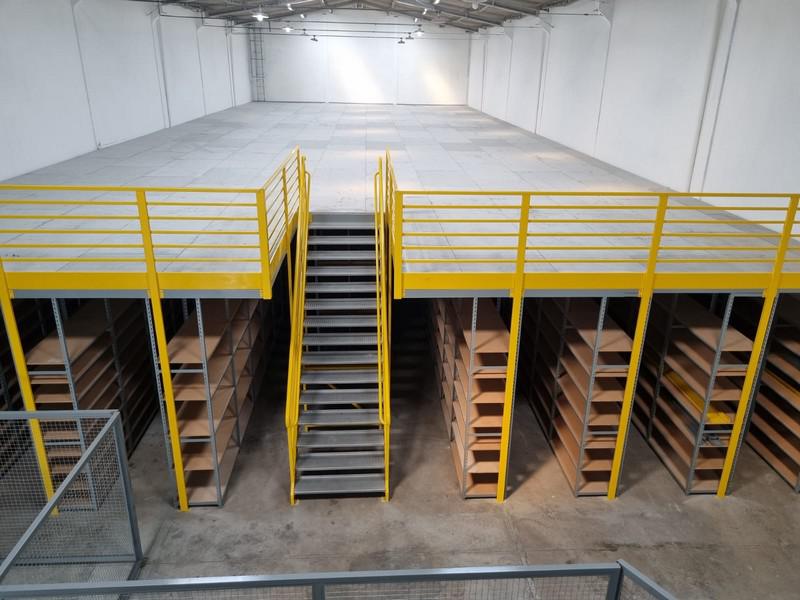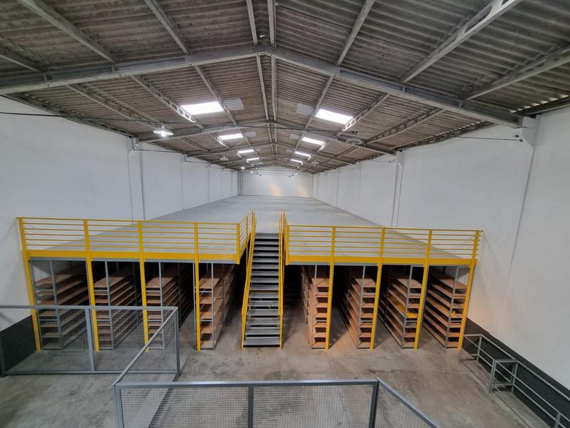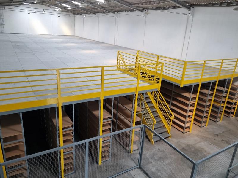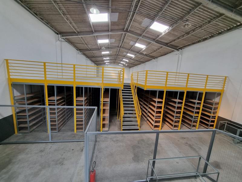 O entrepiso de 480 metros quadrados é sustentado pelas próprias estantes, dobrando a área do estoque.