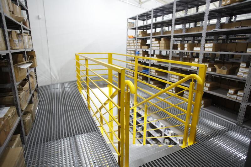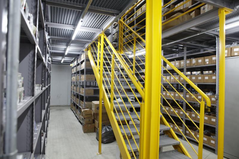 Além disso, para garantir o máximo aproveitamento do espaço, a loja ganhou um mezanino de aproximadamente 40m, e estrutura entrepiso, instalada diretamente sobre as colunas das estantes.