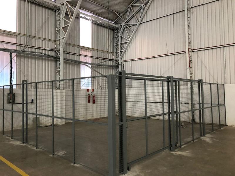 Divisórias industriais e portão para delimitação de um espaço isolado, garantindo organização e segurança.