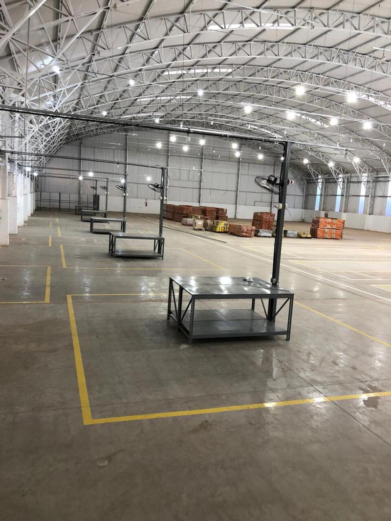 Dois mezaninos, totalizando quase 300 m², para alocação de um escritório, integrando a administração com o centro de distribuição.