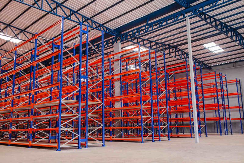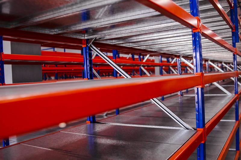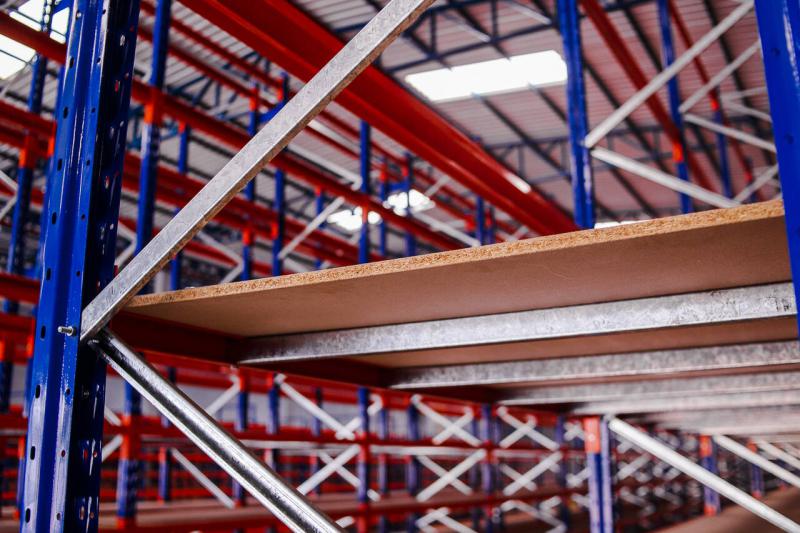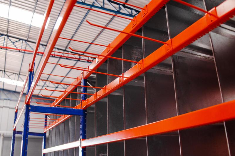 As longarinas em laranja garantem uma melhor visualização para o operador na alimentação por meio de empilhadeiras.